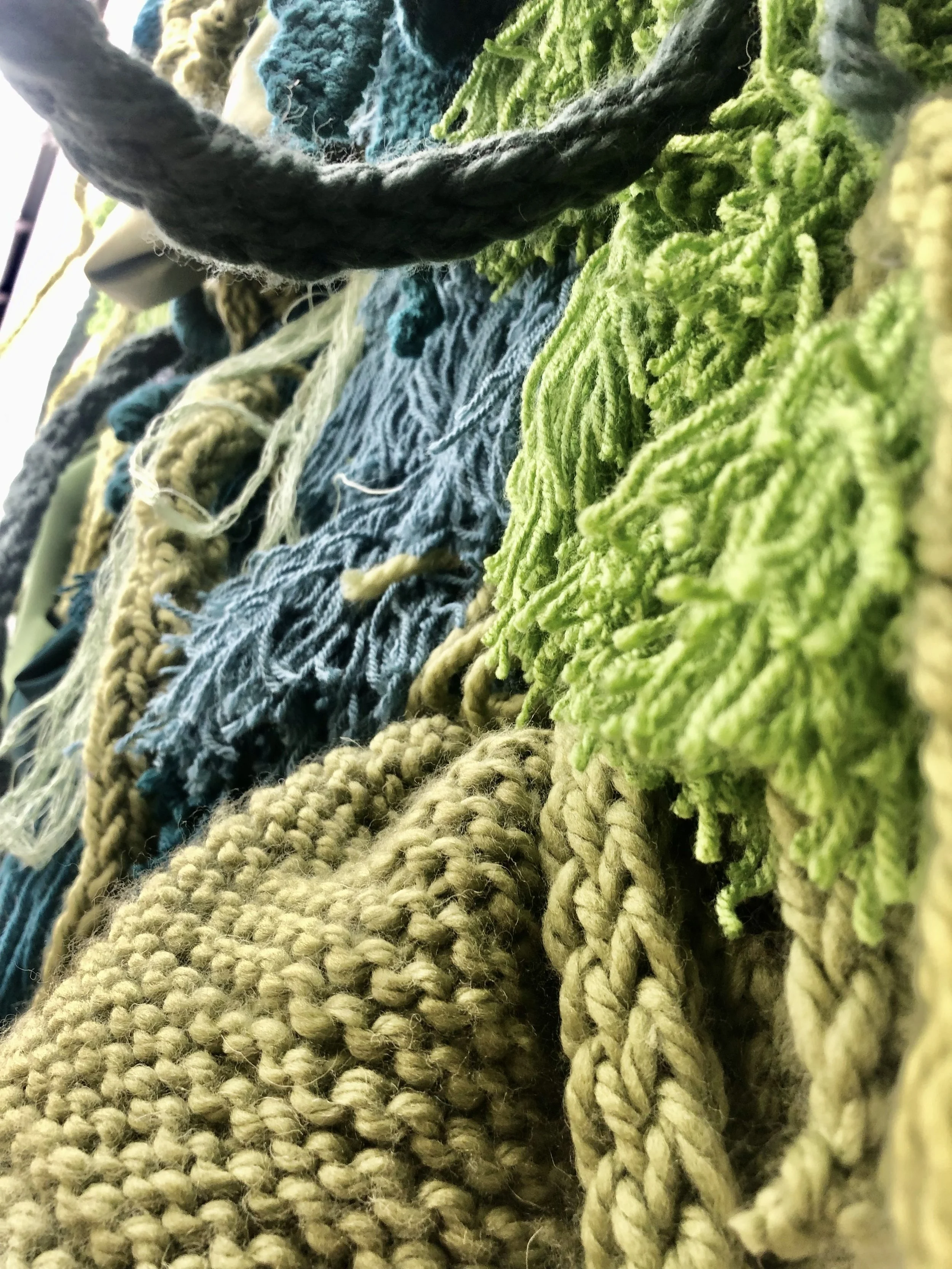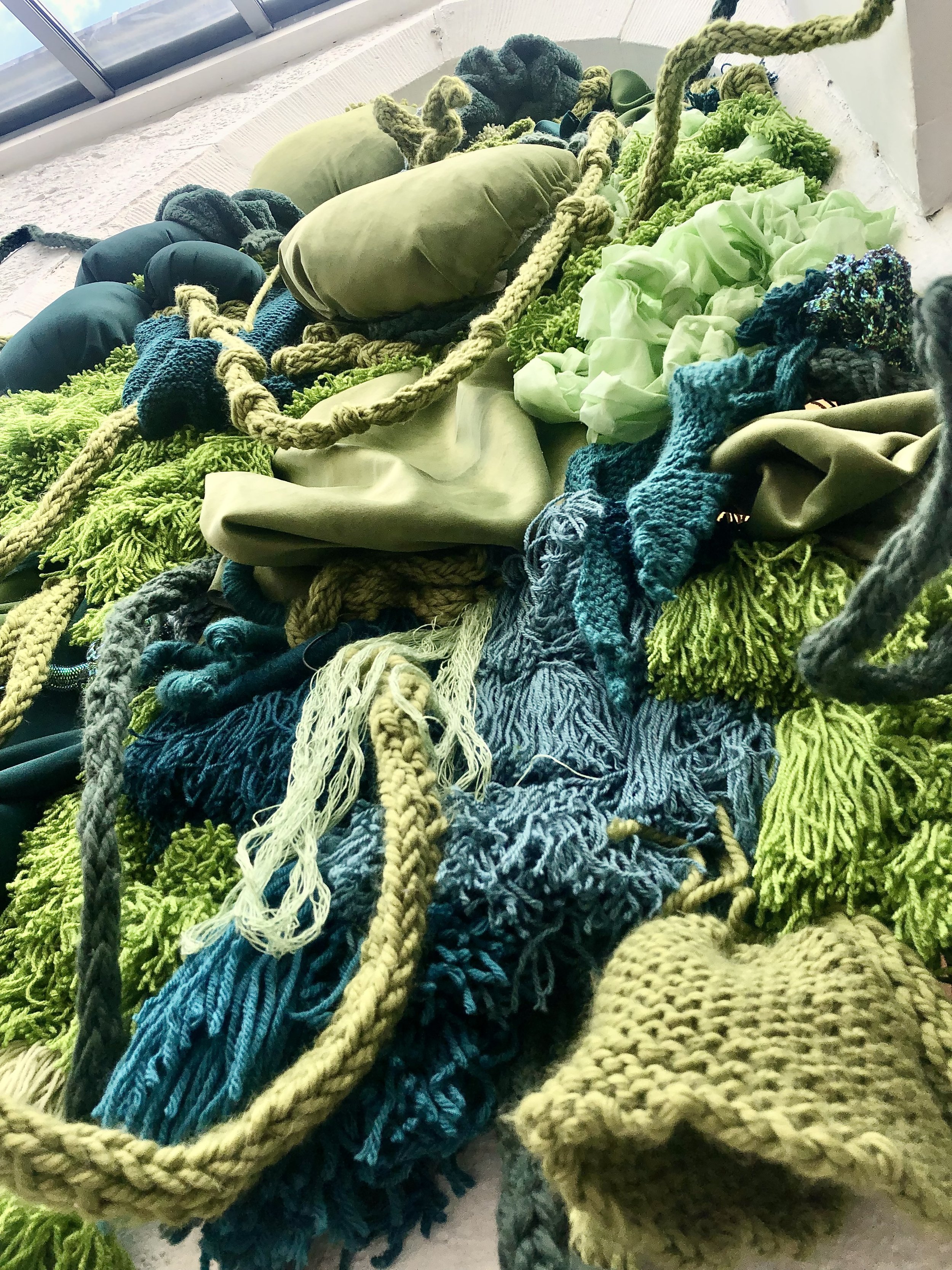 For this work I focused on the concept of transverse orientation in an urban environment. The idea of having an oasis of greenery in a jungle of buildings. This site specific installation located in the former converted Norwegian Seamen's Church, was created using multiple different textile techniques such as finger knitting, weaving and tassel binding all built to catch the viewer as soon as they enter the building.